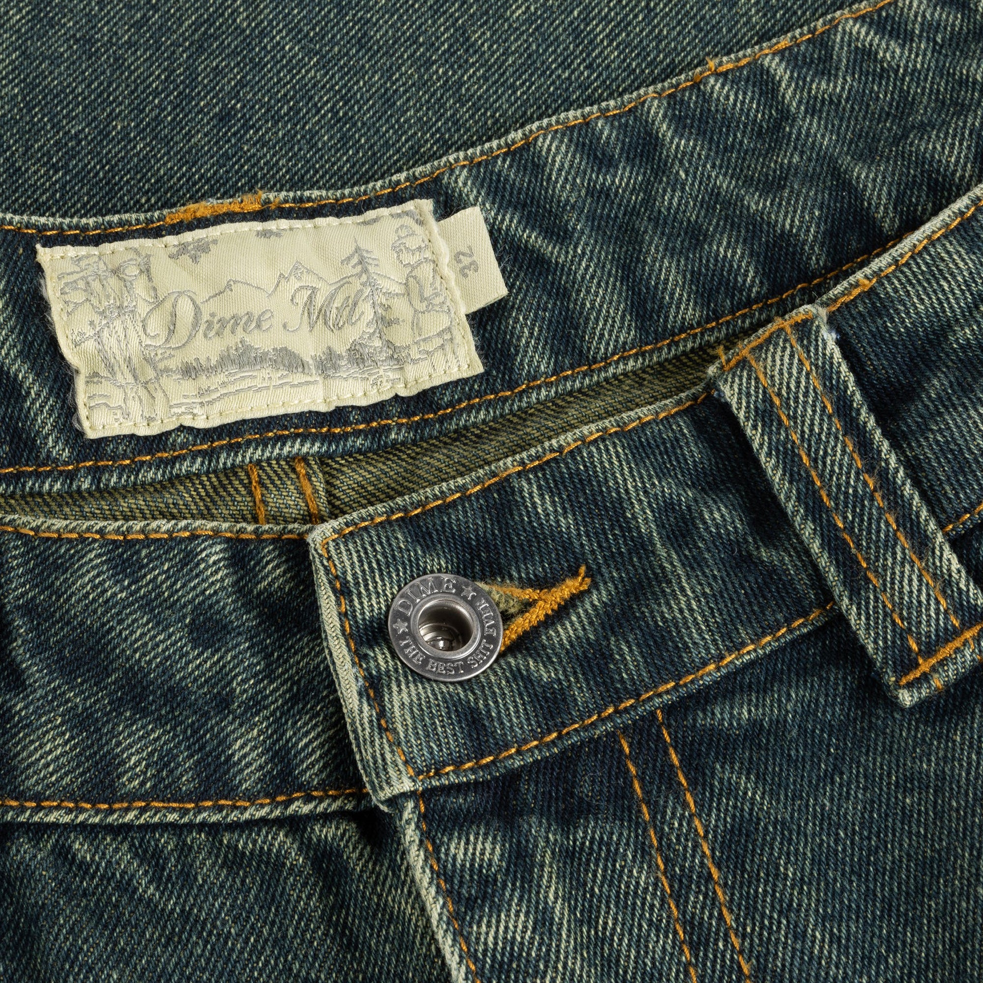 Introducing Dime Fall 2025 range at Pass~Port Store & Gallery. The Dime Baggy Denim Pants are made from 100% Denim Cotton in a Blue / Sandblasted Pine wash. The pants feature Western style pockets and the classic Dime wavy patch back pockets.Â