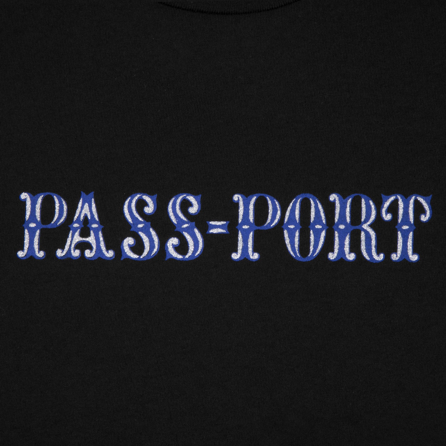 Introducing Range #45: The Pass-Port Glint Tee in black is made from 100% cotton and features a screen print on the front and larger glint print on back. It offers the signature Pass-Port fit.
