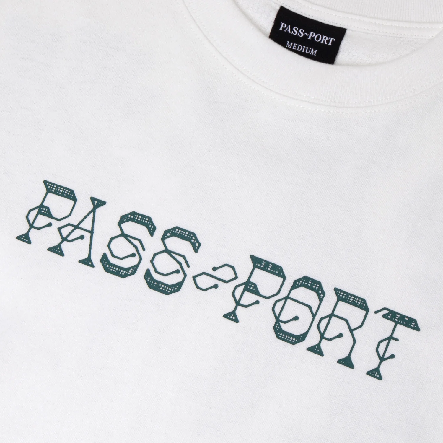 Introducing Range #45: The Pass-Port Needlework Tee in white is made from 100% cotton and features a screen print on the front and larger Needlework print on back. It offers the signature Pass-Port fit.