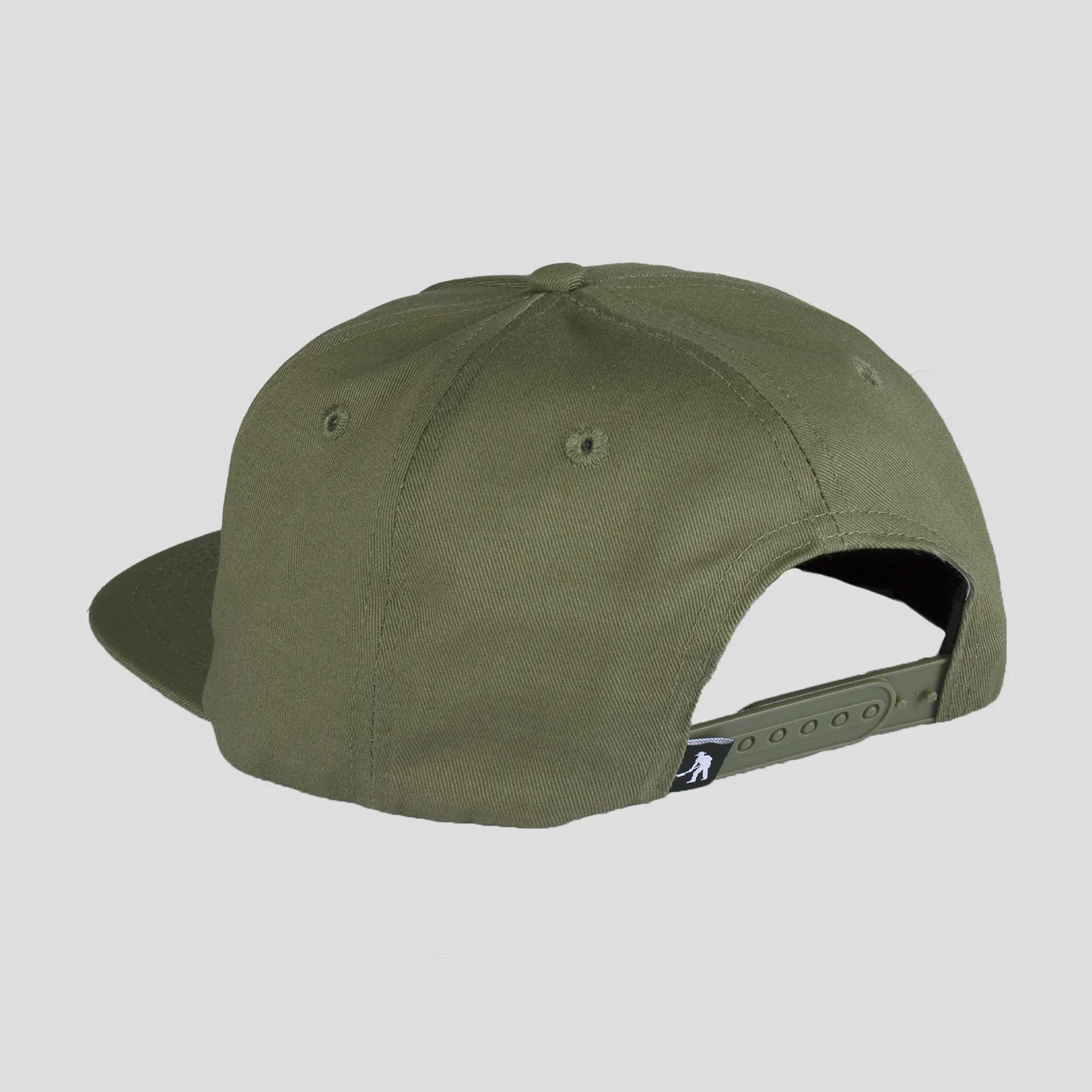 Pass~Port Yearbook Logo Workers cap in military from range #42. The Pass~Port hat is a 5 panel construction made from 100% cotton and features direct embroidery on front with snapback adjustment.